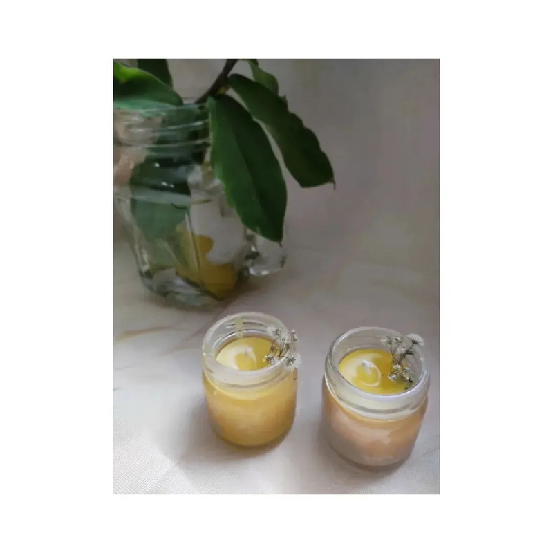 Lemon candles with glass jar 30 ml each It has lemon essential oils and lemon scentes which rejuvenates your energy ,mood and keeps your refreshed✨🍋Quantity-30ml(each) [Without lid]You can get this only as pair